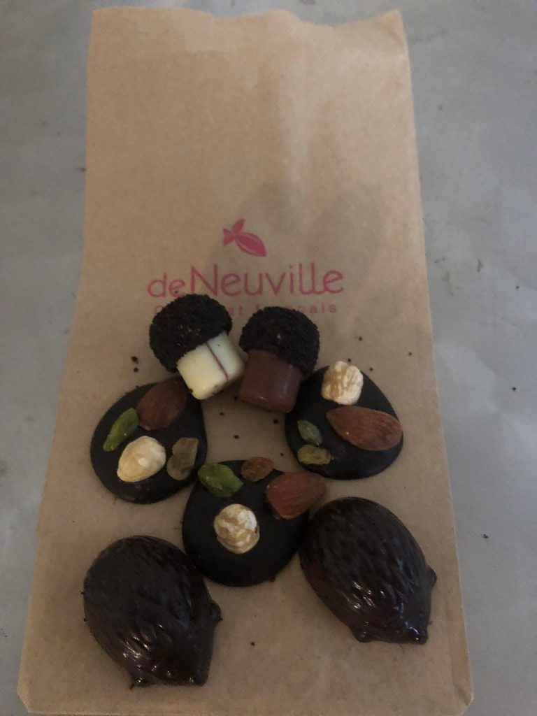 Les chocolats de Neuville d’automne : champignons, mendiants et hérissons.