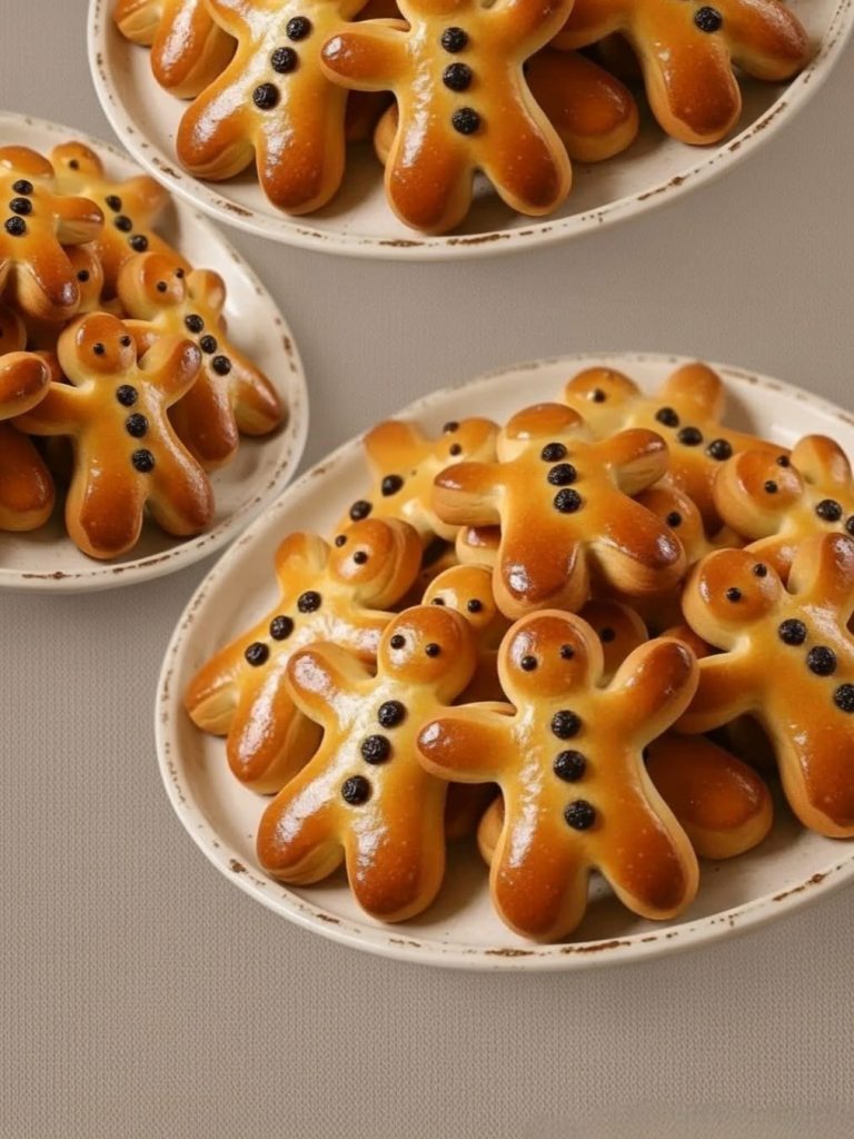 Dégazer la pâte. Diviser en portions égales et former de petits bonhommes à la main ou avec un emporte-pièce.