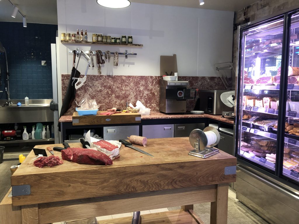 L’idée est très simple, on choisit dans la boucherie le morceau de viande (et son poids) que l’on dégustera dans le restaurant.