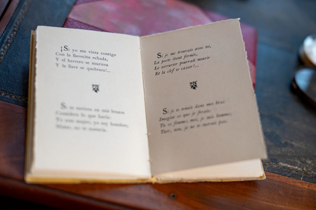 A l’accueil de la Maison, les visiteurs ont le choix des livres : toutes les éditions disponibles des ouvrages de Jean Cocteau, des biographies, des recueils de correspondance, des éditions scientifiques ou encore des livres de ses amis, il y en a pour tous les gouts.