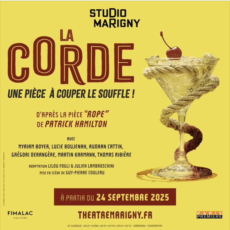 Nouvelle création pour la rentrée 2025 ! La Corde, un thriller policier haletant en 3 actes, adapté de la pièce Rope de Patrick Hamilton et rendu mythique par le maître du suspense, Alfred Hitchcock.