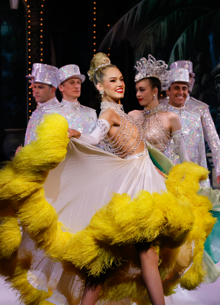 À 21 heures, les lumières s’éteignent et la magie opère avec la mythique revue Féerie : 1h45 d’éblouissement total, entre costumes somptueux, plumes, strass, paillettes, décors grandioses et musiques originales, sans oublier l’incontournable French Cancan ! Portée par une troupe de 60 artistes internationaux, la revue se joue chaque soir sur cette scène légendaire devant plus de 600 000 spectateurs par an.